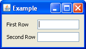 The following builds a panel consisting of two labels in one column, followed by two textfields in the next column: